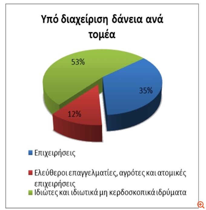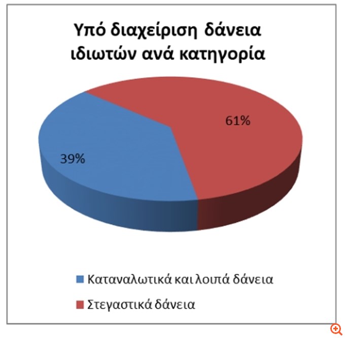 Η ονομαστική αξία των υπό διαχείριση δανείων προς ιδιώτες και ιδιωτικά μη κερδοσκοπικά ιδρύματα αυξήθηκε κατά 1.127 εκατ. ευρώ έναντι του προηγούμενου τριμήνου και διαμορφώθηκε σε 41.975 εκατ. ευρώ στο τέλος του β΄ τριμήνου του 2025. Αναλυτικότερα, τα υπό διαχείριση καταναλωτικά δάνεια παρουσίασαν αύξηση κατά 250 εκατ. ευρώ και διαμορφώθηκαν σε 16.254 εκατ. ευρώ. Τα υπό διαχείριση στεγαστικά δάνεια παρουσίασαν αύξηση κατά 844 εκατ. ευρώ και διαμορφώθηκαν σε 25.370 εκατ. ευρώ.